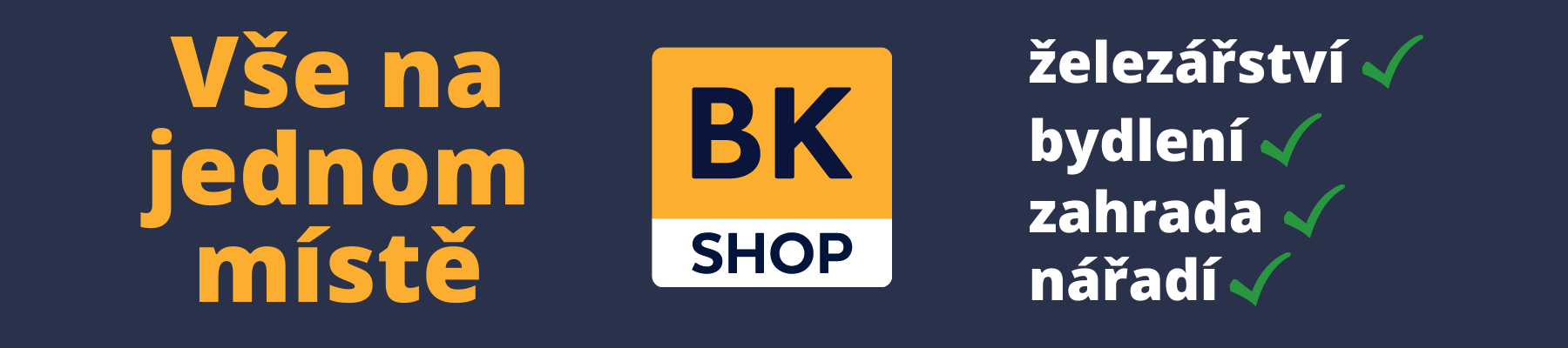BKshop je e-shop pro kutily a řemeslníky, který nabízí široký sortiment pro vybavení domácností, dílen nebo firemních skladů. V našem obchodě najdete produkty, které běžně nakupujete ve stavebninách, domácích potřebách nebo supermarketu a teď jsou na dosah ruky přímo na našich stránkách.